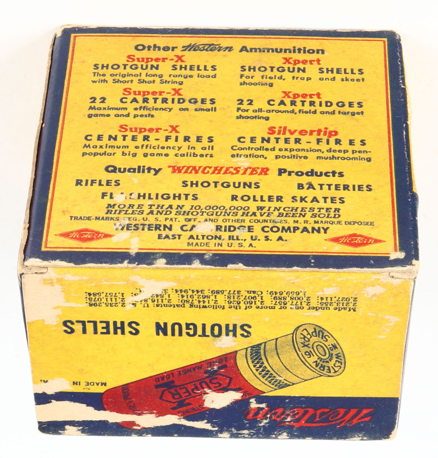 Western Xpert, 16ga., 1pc., Full, shot size 7 1/2, 2 9/16'', mulit-colored box, box has age soiling & scuffing, paper shells are excellent, Grade: Very Good - Value: 10 to 30