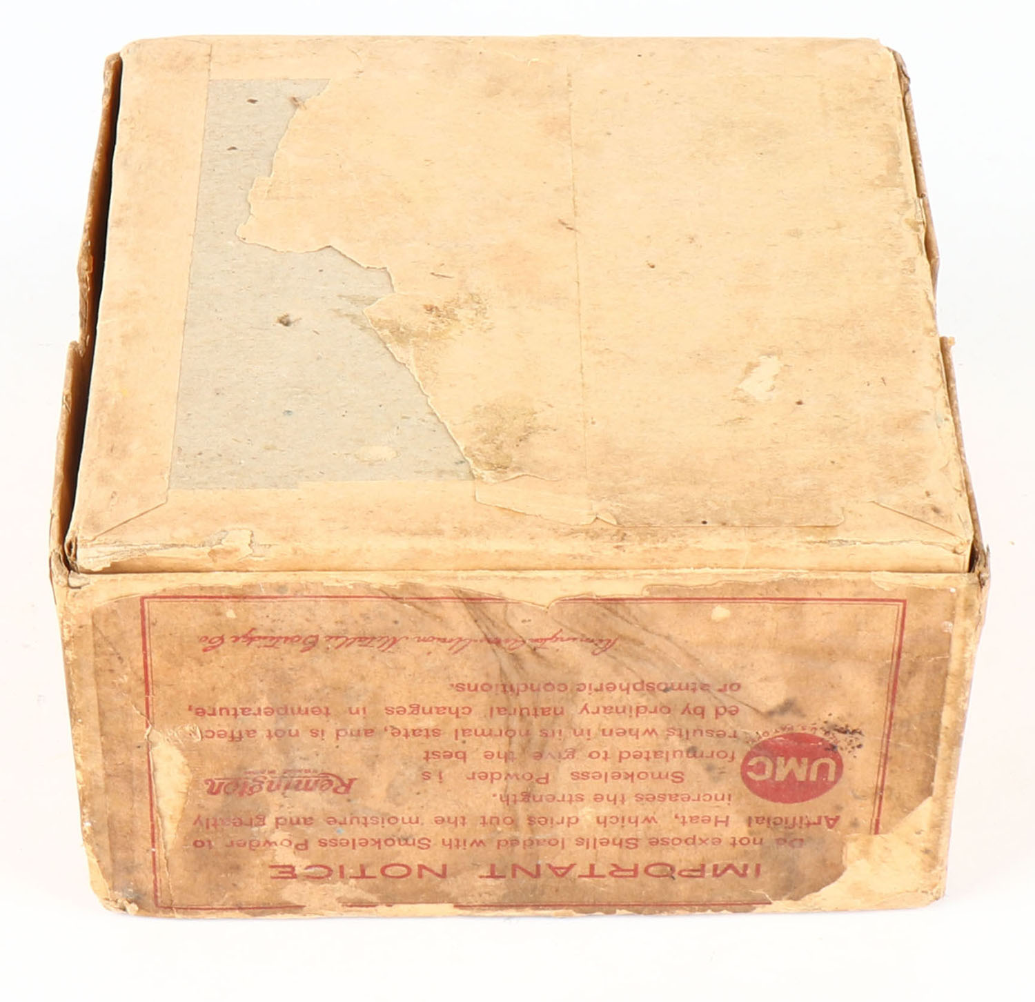 Remington, ARROW, 8ga., 2pc., Empty, shot size 6CH, buff box with buff & red label, box shows age soiling & scuffing, label is 90% intact. Grade: Good + - Value: 100 to 300