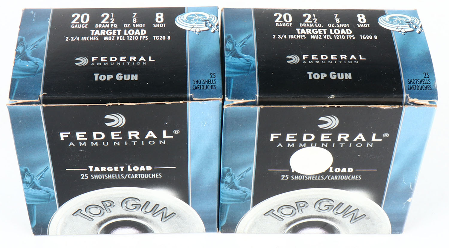 Lot of 2 Federal, 20ga., 1pc., Appears Full, shot size 8, multi-colored boxes. Grade: Excellent ++ - Value: 10 to 30