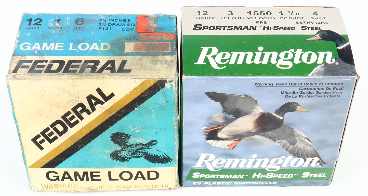 Lot of 2, Mixed Manufacture, 12ga., Appears Full, shot size 4 & 6, Shotshell boxes. Grade: Good ++ - Value: 10 to 30