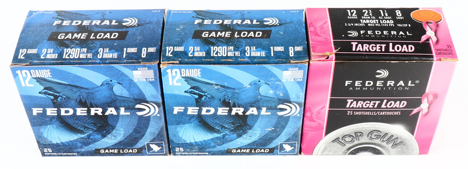 | Lot of 3 Federal, 12ga., Appears Full, shot size 8, shotshell bo...