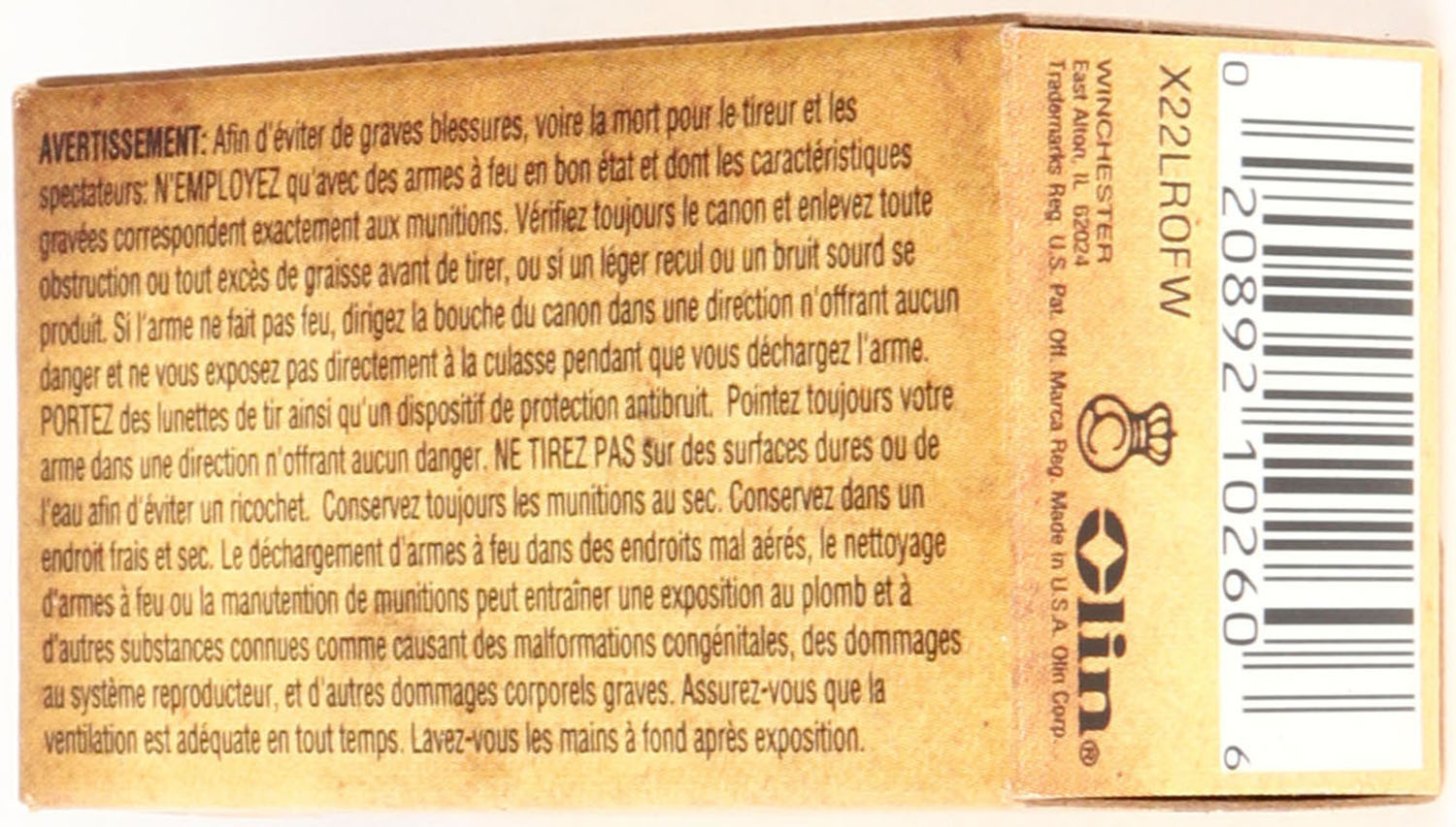 Winchester, .22 Long Rifle, 200 Year Commemorative Box (1810-2010), RHWeb: WRA-H&R-72 LR-10, Full, 1pc. Brown & red box, box is MINT with minty color, sharp corners, crisp edges, solid end flaps, ammo is mint. Grade: MINT - Value: 16 to 30