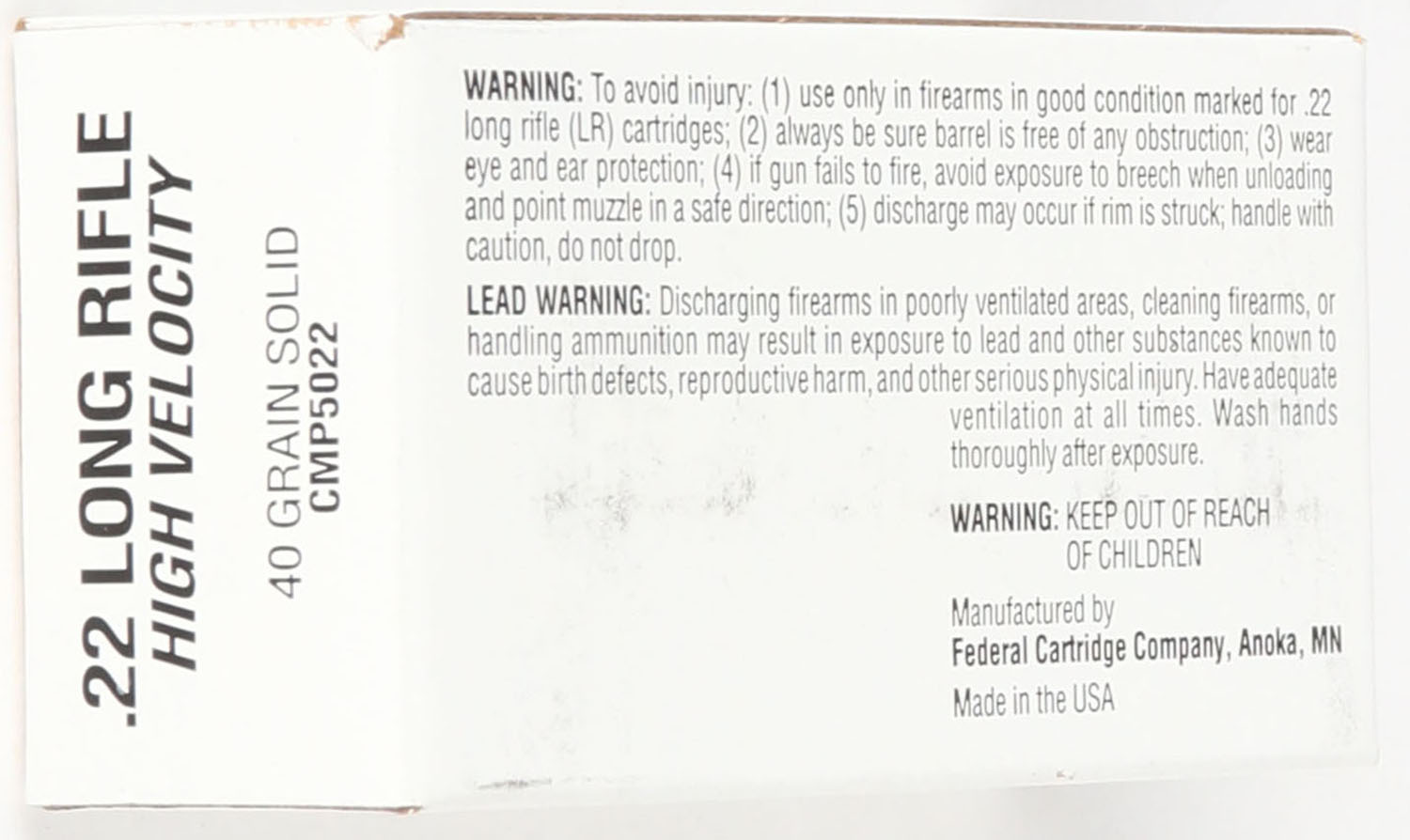 | Federal, Civilian Marksmanship Program, .22 Long Rifle, High Vel...