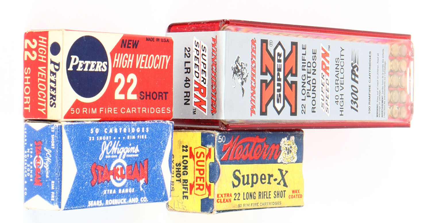 Mixed Mfg., Lot of (4) boxes, (2) appear full, Sears box is partial 40rds., Western box is partial 33rds. Grade: Excellent - Value: 16 to 24