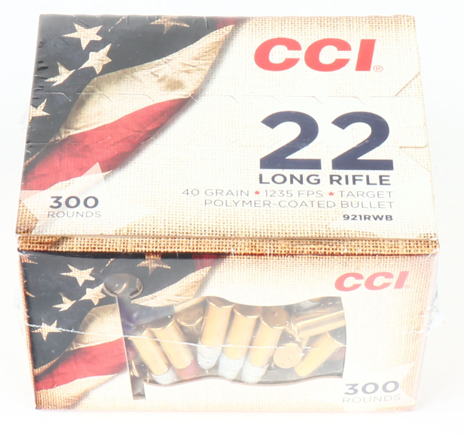 CCi, .22 Long Rifle, 40 Grain Polymer-Coated Bullet, FULL & SEALED, 1pc. Multi-colored box, box is MINT with minty color, corners are sharp, edges are crisp, ammo appears minty. Grade: MINT - Value: 60 to 90