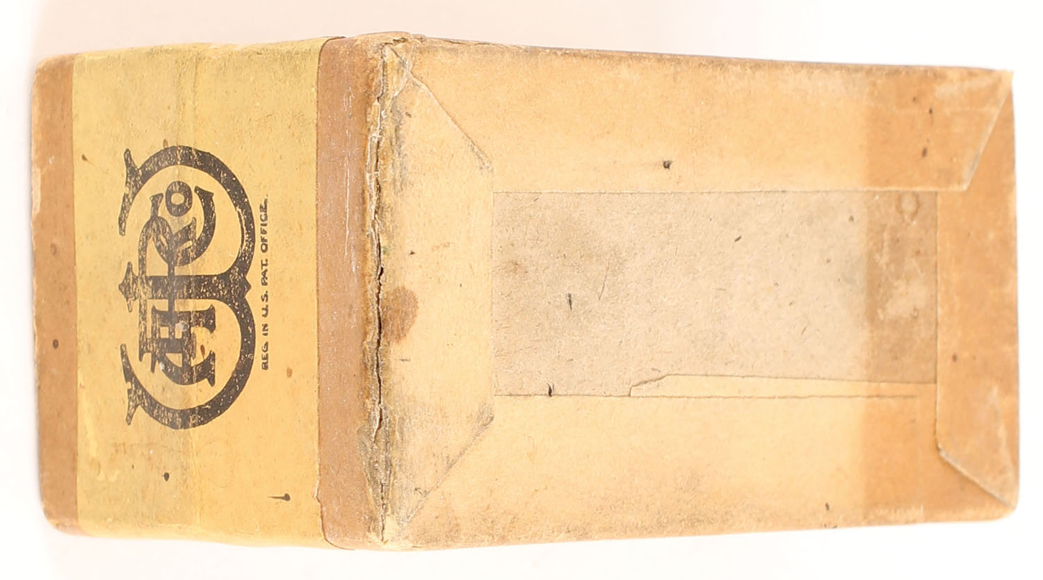 Winchester, Center Fire Cartridges, .22 Winchester Single Shot, 45 Grs. Solid Head, FULL & SEALED, 2pc. Buff box with green top & side sealing labels, box is solid with good to very good color, color fading, some age soiling & shelf wear, partial seam split to top front edge, some edge & corner wear, labels are intact. Grade: Very Good + - Value: 120 to 180