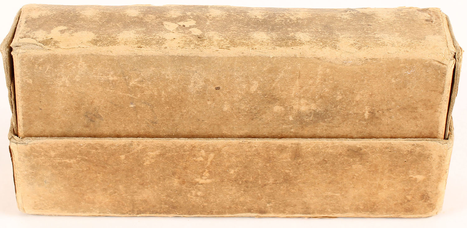 Winchester, Smokeless Cartridges, .30 Remington Autoloading, 170 Gr. Soft Point Bullets, Partial 19rds. correct, 2pc. Buff box with orange labels, box is solid with very good color, age soiling, edge & corner wear, labels are intact, ammo is good, many rounds have cracked necks. Grade: Very Good - Value: 50 to 75