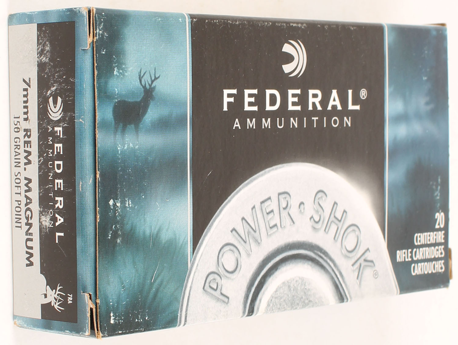 Federal, Power Shok, 7mm Rem. Mag. 150 Grain Soft Point, Full, 1pc., multi-colored box, box is very solid, ammo is excellent. Grade: Very Good - Value: 16 to 24