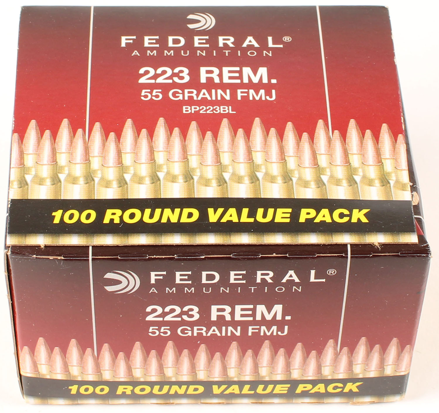 Federal, 100 Round Value Pack, .223 Rem., 55 Grain Full Metal Jacket, FULL & SEALED, 1pc., multi-colored box, box is very solid with excellent colors. Grade: MINT - Value: 40 to 60