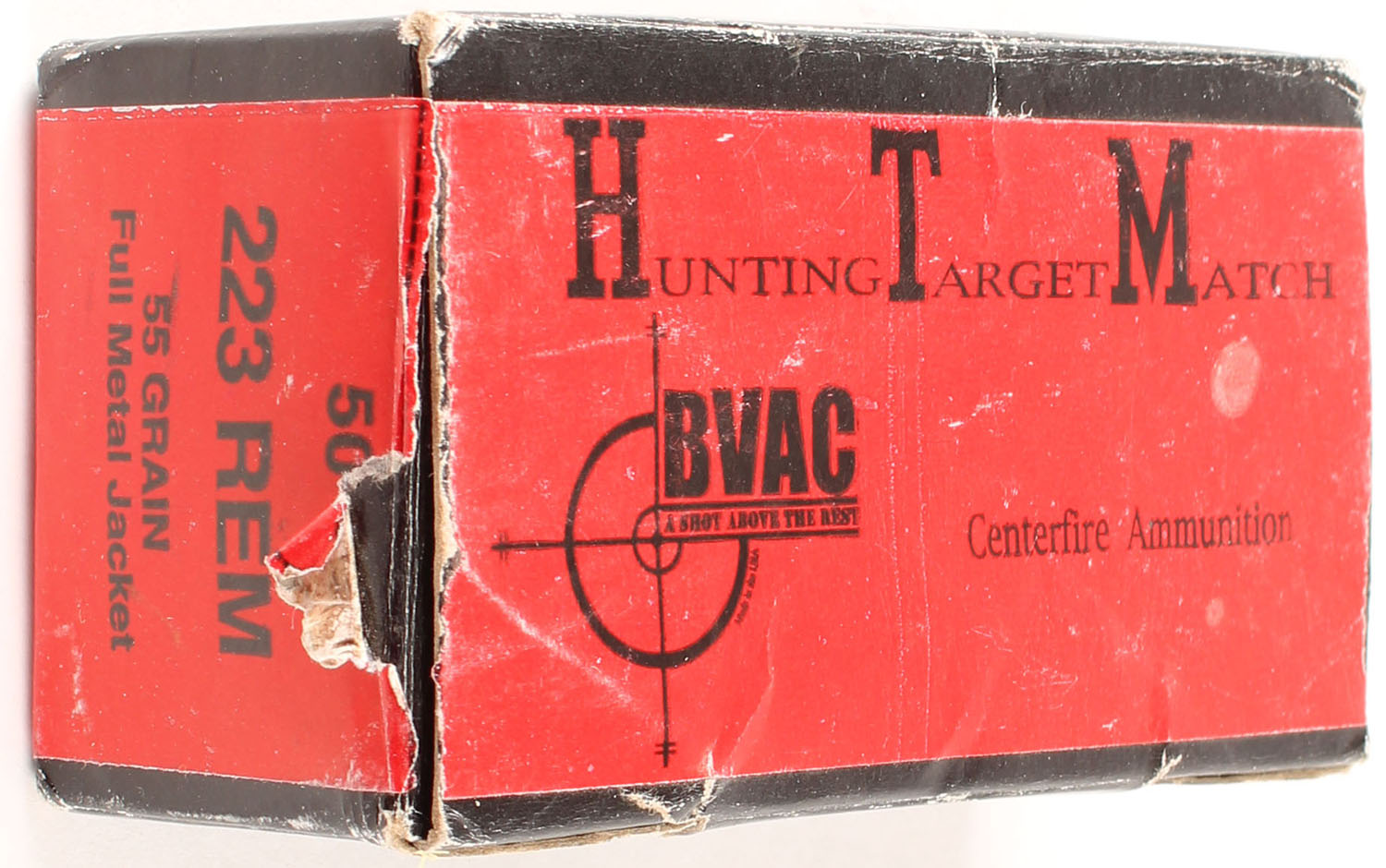 Bitterroot Valley, Hunting Target Match, .223 Rem., 55 Grain FMJ, Partial 40rds., 1pc., Red & black box, box has scuffing & edge wear, ammo is excellent. Grade: Good ++ - Value: 20 to 30