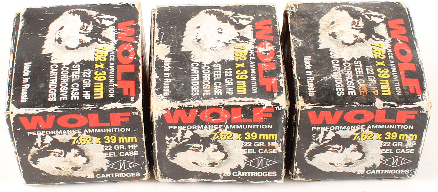 | Wolf, Lot of (3), 7.62x39mm, 122 Grain FMJ Steel Case, Full, 1pc...