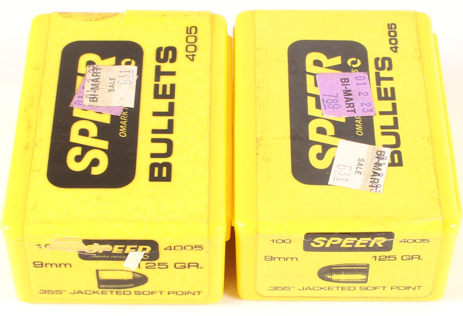 Speer, 9mm, 125 Gr., .355'' JSP, Appears Partial, Yellow & black plastic boxes, boxes are solid, bullets are minty. Grade: Very Good - Value: 14 to 21