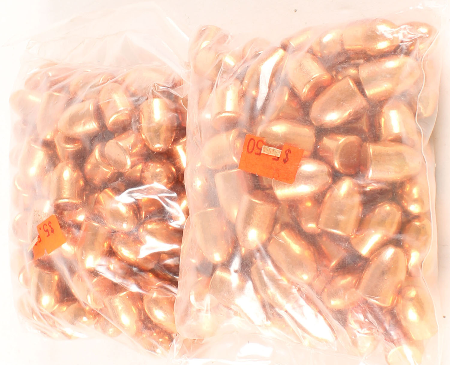 Unknown Mfg., Large lot of bullets, .45 Cal, grain unknown, copper plated bullets are excellent & are sealed in bags. Grade: Excellent ++ - Value: 14 to 21
