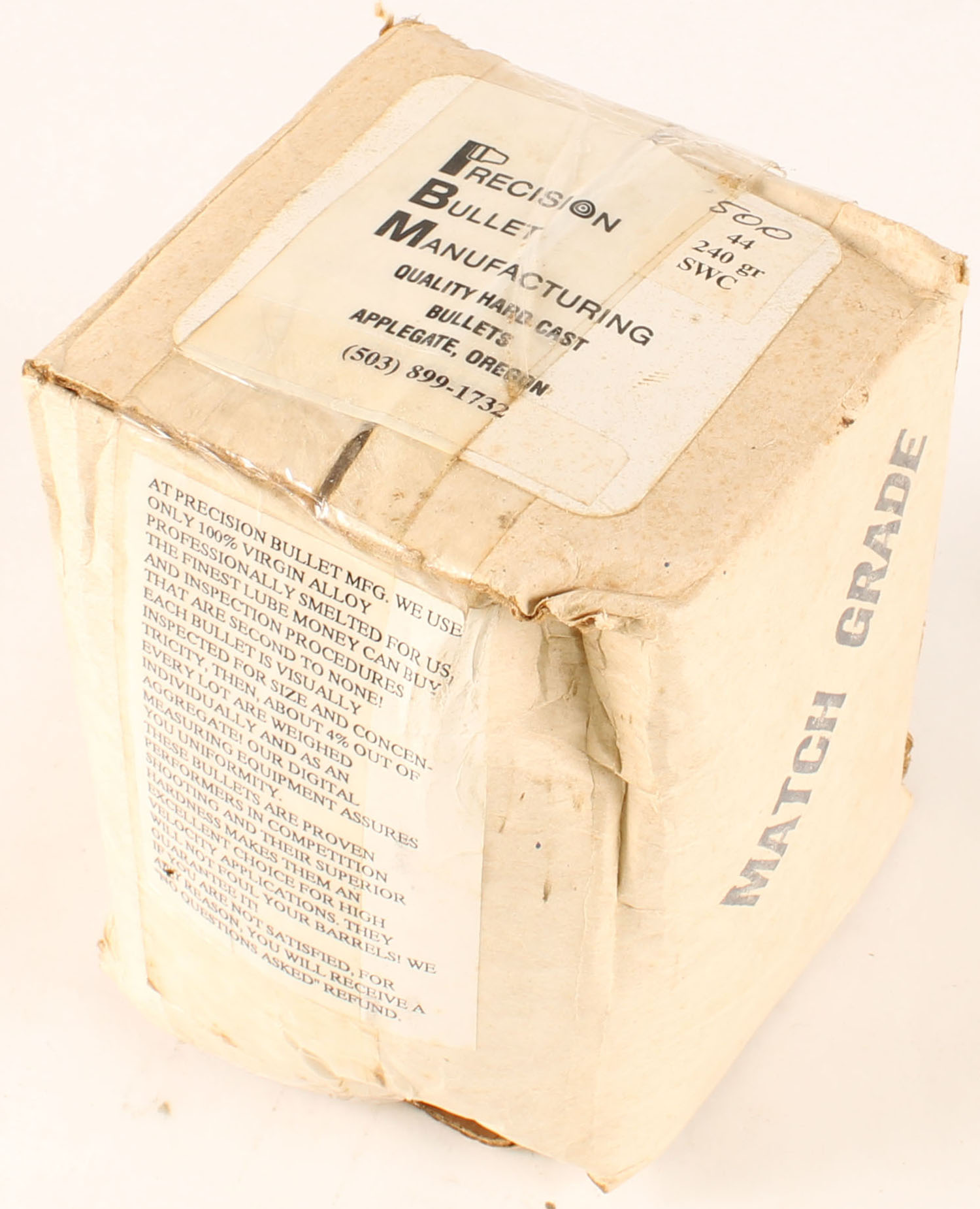 Large lot of Precision Bullet Manufacturing, Match Grade, .44 Cal., 240 Grain SWC, box appears Full (500ct.). Grade: Very Good - Value: 10 to 40