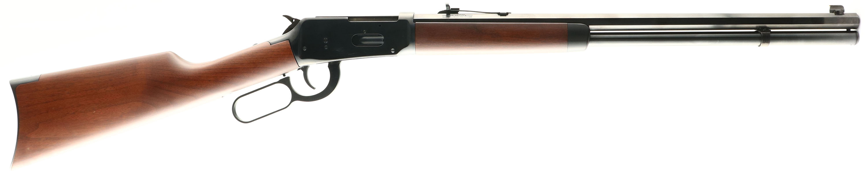 Winchester Model 94 Short Rifle, CAL: 357 Mag, MFG: 1990's, SN: 6548344, Lever Action Rifle, 20'' Octagon barrel, Full mag. The original straight grip wood stocks are excellent, with just a few tiny handling marks to the excellent original finish. The original metal blue finishes are 99% overall, with a few thin brushline scratches to the receiver. Bore is excellent. Barrel holds an adjustable rear elevator sight & elongated blade front sight. Buttstock carries a smooth, crescent metal buttplate. This firearm is almost new, excellent ++ overall. FFL Req. - Value: 800 to 1200