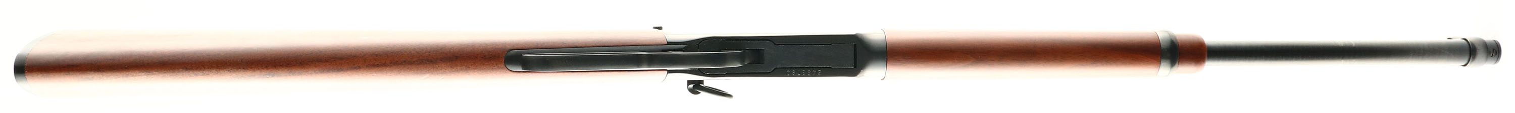 Winchester Model 94 AE SRC Trapper, CAL: 45 Colt, MFG: Modern, SN: 5463790, Lever Action Rifle, 16 1/8'' Round barrel, Full mag. The original smooth grip wood stocks are excellent, with almost no handling marks to the excellent original finish. The original metal blue finishes are 99%. Bore is excellent. Barrel holds an adjustable rear elevator sight & tall blade front sight. Buttstock carries a Winchester checkered plastic buttplate. Saddle ring. This firearm is almost new, but without the box. FFL Req. - Value: 1000 to 1400