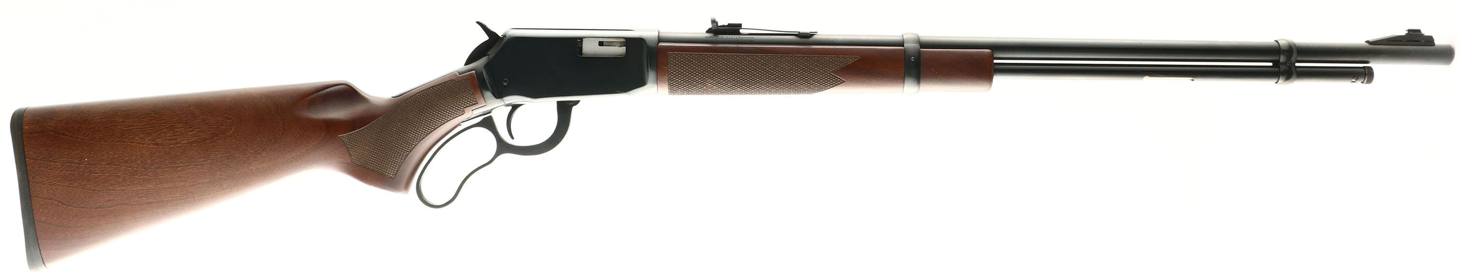 Winchester Model 9417, CAL: 17 HMR, MFG: Modern, SN: F767991, Lever Action Rifle, 22 1/4'' barrel. Grooved receiver. The original checkered, straight grip wood stocks are excellent, displaying factory finish & very few minor handling marks. The original metal blue finish rates 95% overall. Barrel holds an adjustable rear elevator sight & a ramped front sight. Bore is excellent. Buttstock carries a factory Winchester rubber buttplate. An overall excellent rifle. FFL Req. - Value: 600 to 1200