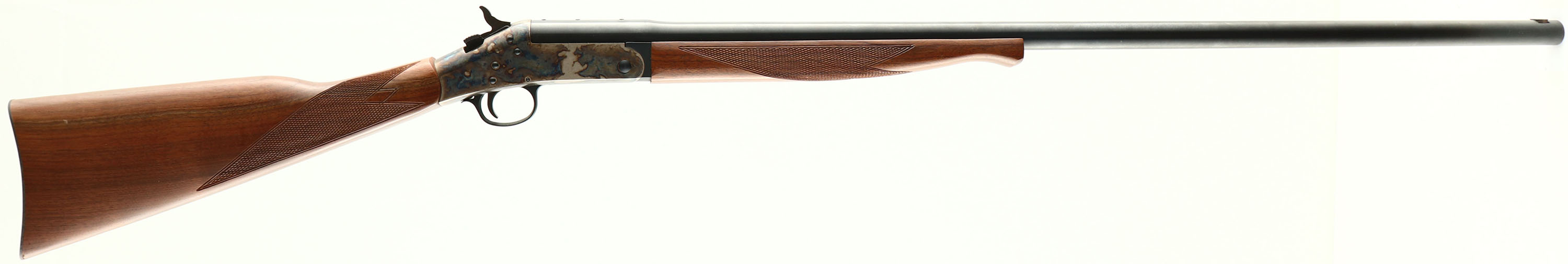 Wesson & Harrington, Model 1871, CAL: 45-70, MFG: Modern, SN: WH710146, Break Action Single Shot Rifle, 32'' round barrel. The original checkered straight grip wood stocks are excellent, displaying virtually no handling marks to the excellent original finish. The metal blue finish rates 99% overall, with the receiver displaying fantastic case-colors. Bore is excellent. The rifle carries 3 factory screw filled holes on the top of the barrel for future scope mounting & a blank filled dovetail at the muzzle end. The buttstock carries a smooth metal buttplate. Like new overall condition. FFL Req. - Value: 350 to 700