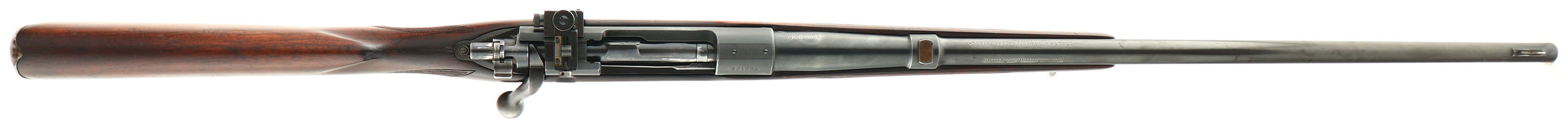 Winchester Model 54, CAL: .30 GOV'T'06., MFG: 1931, SN: 35168A, Bolt Action Rifle, 24'' barrel. The model 54 was the first successful civilian bolt action for Winchester. They are a fairly rare model with total production of just over 50,000 in all variations from 1925 to 36. The original checkered & flat pistol grip wood stock on this example is excellent, with several minor contusions, scrapes & scratches to the original finish. The finish has darkened some from use & oiling. The metal blue finish is toning gray with coverage rating 85% on the receiver, 75% on the barrel, with loss due more to density thinning rather than coverage. The floorplate & trigger guard display greater wear & toning gray. Bore rates excellent. The rifle is fitted with the desired & fully adjustable Lyman 48C receiver sight, while the barrel has a blank filled rear dovetail & standeard pinned blade front sight. Some wood alteration around the Lyman receiver sight. Buttstock carries the original serrated metal buttplate. Sling loops. A good example of an early Winchester bolt action. FFL or C&R Req - Value: 800 to 1500