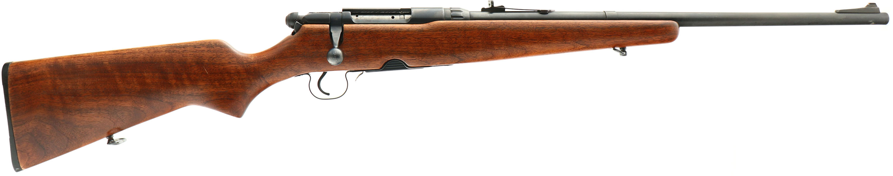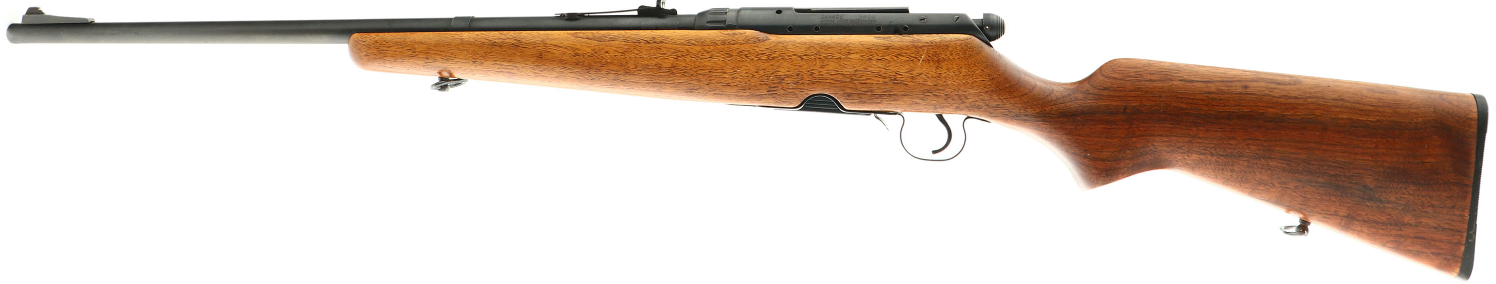 Savage, Model 340 C Series, CAL: 30-30, MFG: 1960's, SN: None, Bolt Action Rifle, 22'' Round barrel. The original flat pistol grip wood stock is excellent. It appears to carry the original factory finish, with a possible thin layer of added finish. There are a few minor dings or scrapes to the excellent finish. The original metal blue finish rates 90% overall. Bore is excellent & bright. The barrel carries an adjustable rear & ramped blade front sights, The left side of thte receiver has four open holes where a scope mount previously resided. Buttstock carries the original serrated plastic buttplate. Original detachable mag. Sling loops. FFL or C&R Req. - Value: 250 to 500