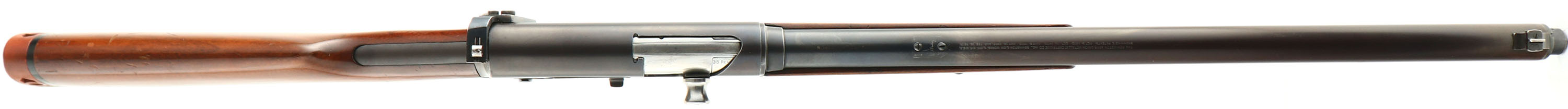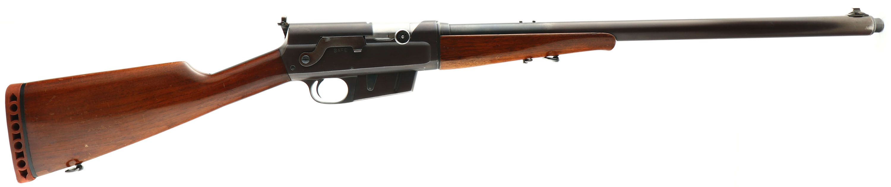 Remington, Model 8, .35 Rem Cal, MFG. 1936, SN: 69908, Semi-Auto Rifle, 22'' barrel. As a 1936 rifle, it is a last year of production example & one of the last & highest encountered SN's. The straight grip & schnabel forend stocks are very good & soild. There are numerous minor to small handling, nicks, scrapes & contusions to the original finish, which has some flaking & thinning at the carry points. The stock carries a Red Head ventilated recoil pad, which required the stock to be straight cut & a small filler piece of wood to fill the void from the lower tang of the old buttplate. The original metal blue finish rates 60% overall, but like most mid to late 1930's rifles, the blue is toning plum as it thins. Bore is excellent. The rifle carries a Lyman 41 side mounted receiver sight, while the barrel carries two filler screws in the rear provisions & a standard blade front sight. 4 round fixed magazine. Tight action. The stock & forearm carry sling loops. A well set up hunting rifle in the popular hunting 35 caliber. FFL or C&R Req. - Value: 400 to 750