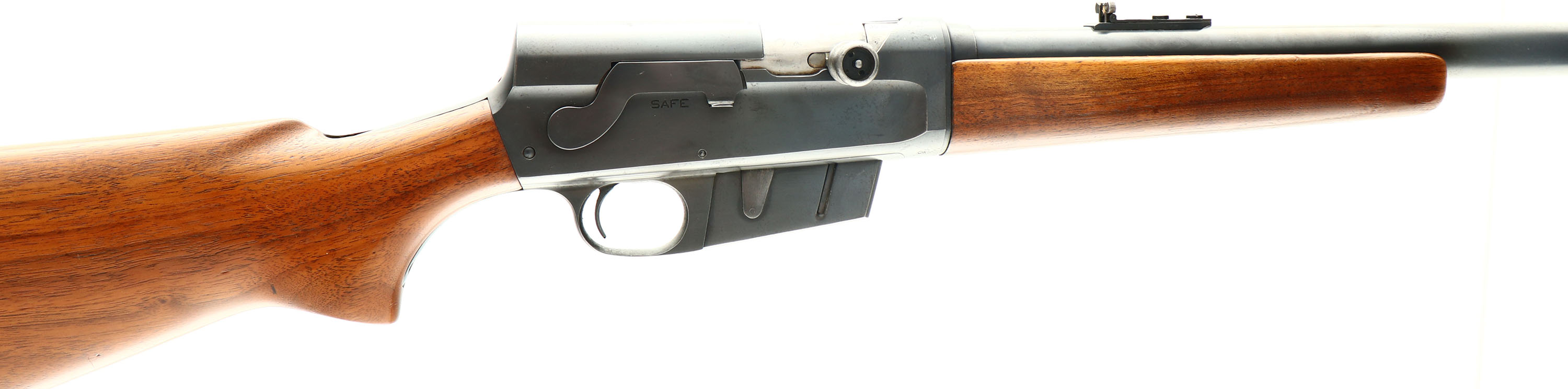 Remington, Model 81, 35 REM CAL, MFG. 1950, SN: 51082, Semi-Auto Rifle, 22'' barrel. The original flat pistol grip wood stocks are excellent, having been lightly sanded & very nicely refinished. There are very few minor handling marks or light & contusions remaining. The metal is slightly proud to the wood in the area of the wrist. The original metal blue finish rates 85% overall, but with loss due to speckled haze throughout. The barrel carries a Marble's folding rear rear & ivory bead front blade sights. Bore is excellent. Stock carries the Remington checkered metal buttplate. 4 rd fixed magazine. An excellent presenting standard 81 rifle. FFL or C&R Req. - Value: 600 to 1200