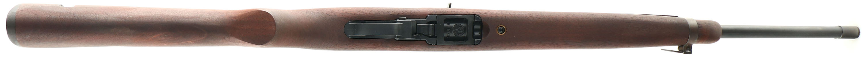 Ruger, Model 10/22 M1 Carbine Tribute, CAL: 22 LR, MFG: Modern, SN: 0020-22549, Semi Auto Rifle, 18 1/2'' barrel. Among the most useful, reliable, and practically accurate .22 caliber rifles made is the Ruger 10/22. Introduced in 1964, the Ruger 10/22 has become the most popular .22 rimfire rifle in America. The M1 .30 Carbine was used in World II, Korea, & Vietnam & is a highly collectible firearm. Light, handy, & firing a mid range cartridge, the M1 carbine was the first low-maintenance military rifle & the first issued with non-corrosive ammunition. Ruger has introduced a version of the rifle that is similar in appearance to the M1 Carbine. The Ruger 10/22 M1 version isnt a reproduction as it is chambered in .22 Long Rifle, but it is fittingly called a tribute to the M1. The flat pistol grip M1 style wood stocks are excellent, with virtually no handling marks to the excellent original flat oil finish. The stock includs a slot in the rear of the stock that allows the use of a sling in the original M1 carbine manner, along with the sling loop on the forearm barrel band. The metal blue finish rates 100%. Bore is excellent & bright. The receiver carries a M1 style aperture type rear sight & a picatinney rail, while the barrel holds a the M1 blade sight with protective flared wings. Buttstock carries a smooth plastic buttplate. Comes in Ruger's replica U.S. marked tan canvas carry bag & ammo pouch. Excellent overall condition. FFL Req. - Value: 400 to 600