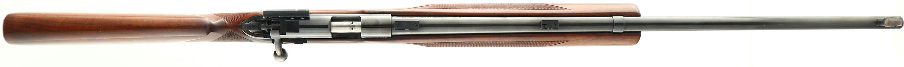 RARE & FANTASTIC Winchester, Model DELUXE 52 ''C'' STANDARD BARREL Target rifle, Marked .22 L. Rifle. Cal., MFG. 1953, SN: 79219C, Bolt Action Rifle, 28'' Standard barrel. The rifle in this auction is a matched companion to the rifle in Lot 4241. These are the only two factory model 52-C DELUXE target rifles known to exist amongst collectors. If you reference Herbert House's book on Winchester Model 52's, there are two factory checkered model 52-B rifles pictured. There owners of those two Deluxe 52-B target rifles have examined these two Deluxe 52-C target rifles & confirmed without hesitation these are truly factory original. Additionally, if you reference Roger Rule's book on the Winchester Model 70, he pictures a Model 70 Target with the same factory Deluxe checkering patterns & factory grip cap. None of the men have previously encountered another 52-C Deluxe Target rifle other than the two offered in these two lots. Both rifles were produced in 1953 & are only 367 SN's apart. This was still early in the production of 52-C rifles & has lead to speculations that the two rifles were produced by the factory for display & marketing at various national target shooting competitions. If not the case, they were at the very least likely custom ordered at the same time & for the same customer. The two rifles remain in almost identical original & excellent overall condition. Regarding the rifle in this lot, the original deluxe, hand checkered & capped pistol grip ''Marksman'' target stock is excellent. There are a few minor to small scratches, rubs & areas of finish wear to the otherwise excellent original finish. The checkering remains sharp & the overall appearance of the stock is excellent. The original metal blue finish rates 98% overall, while the receiver is starting to tone to a slight plum patina. Bore is excellent & bright. The receiver & barrel carry the three mounting blocks for scope or receiver sight attachment. Although this is simply a ''Standard'' barrel, the standard barrel is typically more desired by collectors, as most 52C target rifles carried a ''Heavy'' barrel, making ''Standard'' barrel examples rarer. The rifle has the adjustable ''Micro Motion'' trigger. The stock is fitted with the original checkered metal buttplate. Also mounted with the original forward hand stop & sling loops. The rifle carries the original Winchester stamped 5 round mag. An excellent opportunity to purchase this rare deluxe target rifle, along with its companion deluxe target rifle in the next lot.* FFL or C&R Req. - Value: 5000 to 6500