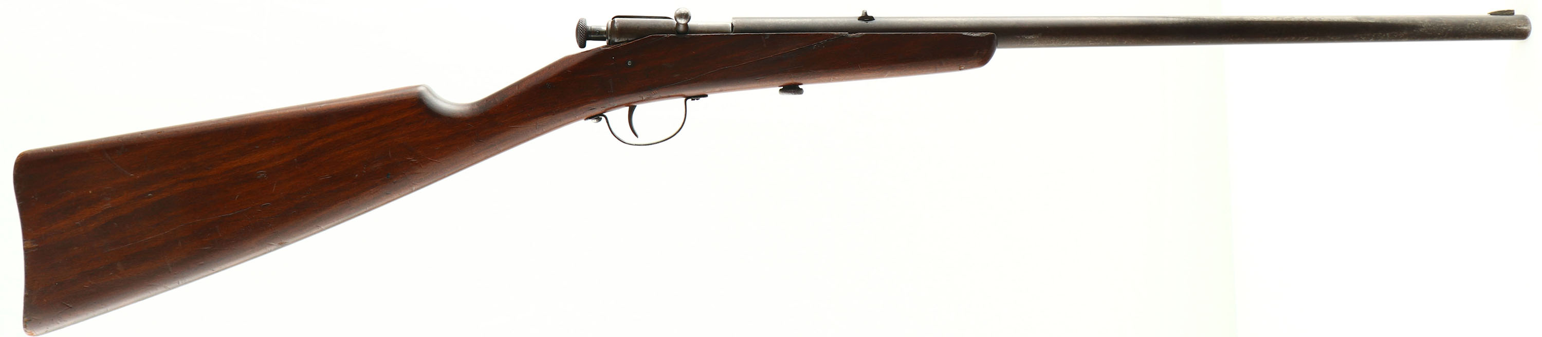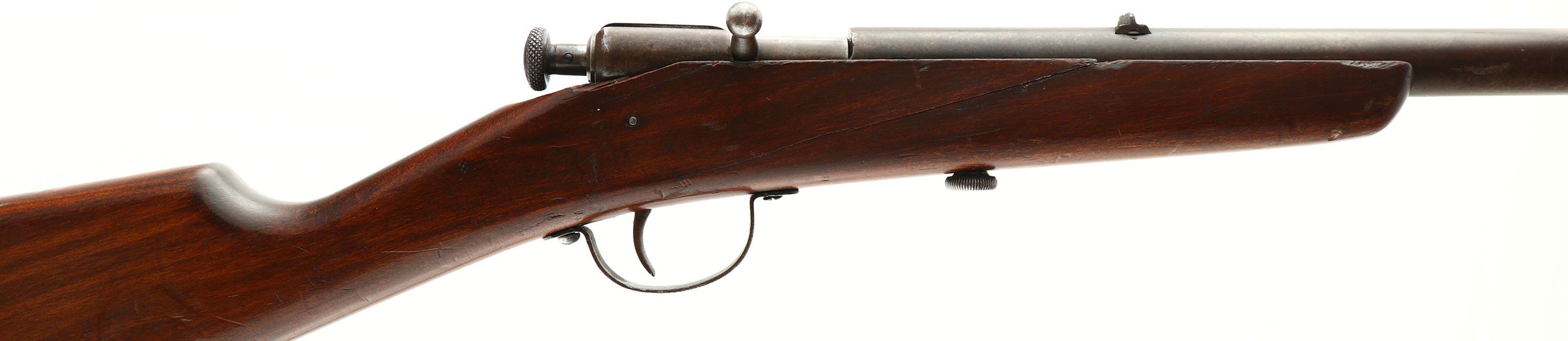 Winchester, Model 58, CAL: 22 S,L,LR, MFG: 1928-31, SN: NONE, Bolt Action Rifle, 18'' barrel. This is a fairly rare rifle as only 38,992 were produced during the four years of production. The straight grip wood stock is good, with a number of minor contusions or scrapes & a 5'' glued crack on the right side. The metal blue finish has worn to a thin brown patina. Bore is very good & bright. Factory fixed sights. Produced without a buttplate. FFL or C&R Req. - Value: 200 to 400