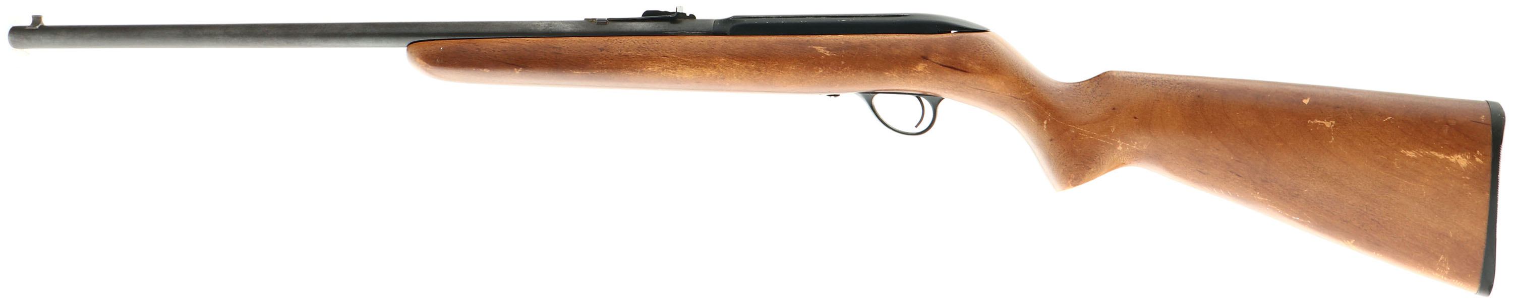 Stevens (Savage Arms), Model 73, .22 S, L, LR Cal., MFG. 1920's-30's, SN: P833594, Bolt Action Single Shot Rifle, 20'' round barrel. The original flat pistol grip wood stock is very good & solid, with some minor scrapes, contusions & scratches to the thinning original finish. The original metal blue finish rates 70% overall. Bore is excellent. The barrel caries an adjustable rear & front blade sight. Stock carries a replaced plastic buttplate. The trigger does not engage & therefore does not fire. Likely needs gunsmith repair & possible parts. Therefore its being sold ''AS-IS'' with no returns. FFL or C&R - Value: 30 to 100