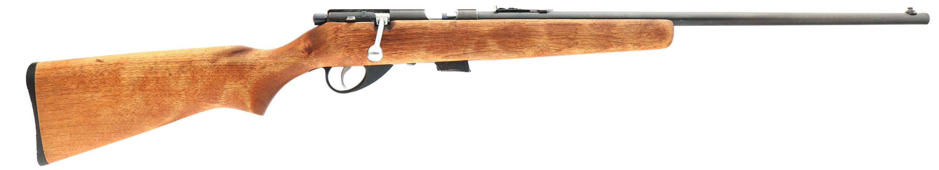 J.C. Higgins (Sears), Model 103-228 (Marlin 80), Marked .22 S, L, LR Cal., MFG. 1955-59, SN: None, Bolt Action Rifle, 24'' round barrel. Production of 26,000+ rifles. The original flat pistol grip wood stock is excellent, having been lightly sanded & oiled. There remains a few very minor scrapes & contusions. The original metal blue finish rates 85% on the barrel, 70% on the receiver toning a bit plum. The bore is excellent & bright. The barrel carries an adjustable rear & front blade sights. Grooved receiver. The stock carries the original plastic buttplate. Detachable mag. Nickeled bolt, bolt handle & trigger. FFL or C&R Req. - Value: 100 to 300
