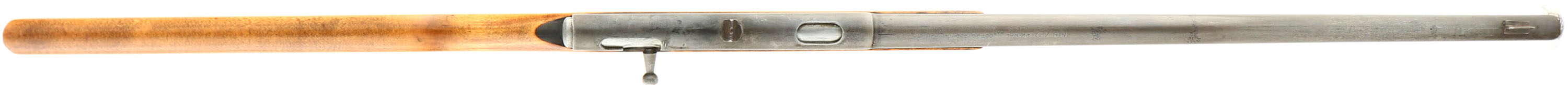 C.J Hamilton & Sons Model No. 43, 22 CAL L & S, MFG: 1924-32, SN: NONE, Bolt Action Rifle, 16'' round tapered barrel. 35'' overall length. Similar to the model 23, with a top loading port. The straight grip board type walnut stock is very good, as sanded & refinished. It displays a few minor contusions & blemishes under the finish. Original metal blue finish has fully worn a gun metal gray. The steel rolled barrel carries the original brass liner, which has a good bore. 12 groove bore with 1 turn in 16''. Factory blade front & fixed rear sight. Carries no buttplate as manufactured. ''S'' shaped trigger guard. FFL or C&R Req. - Value: 125 to 250
