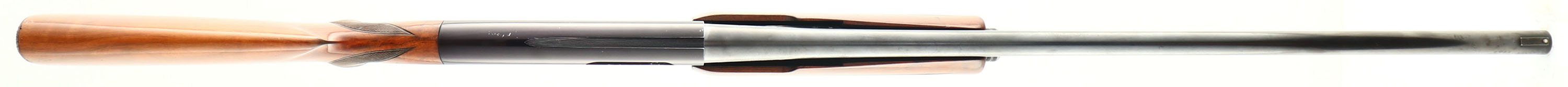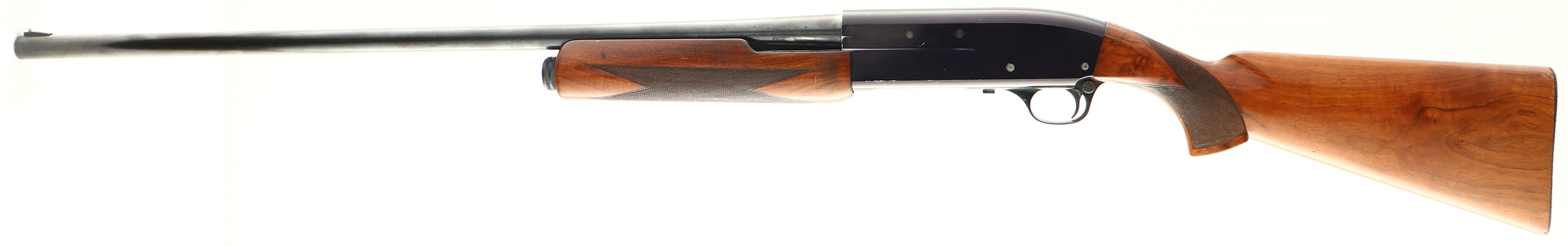 Manufrance Firearms International Corporation, Model La Salle, 12 GA., MFG. early 1960's, SN:17631, Pump action, 28'' Round barrel. The original checkered & flat pistol grip stocks are excellent, with several minor scratches & contusions to the original finish. The original metal blue finish on the barrel rates 70%, while the aluminum alloy receiver finish rates 70%. Bore is excellent. The barrel carries a single front bead. The stock carries a Remington checkered metal buttplate. LOP is 14''. FFL or C&R Req. - Value: 150 to 400