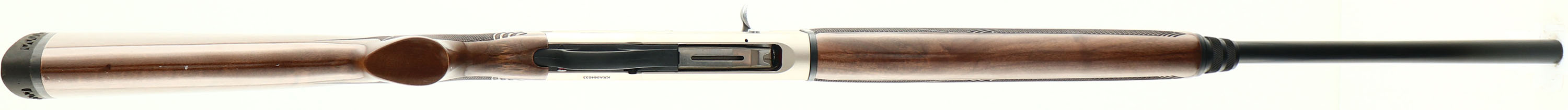 TriStar, Model Raptor Walnut, CAL: 12 GA, MFG: Modern, SN: KRA084033, Semi-Auto Shotgun, Screw-in choke tube, with a MOD choke installed, 3'' Chamber, 26'' Ventilated barrel. The original checkered & flat pistol grip wood stocks are excellent, with few tiny handling marks to the original finish. The original metal blue finishes on barrel rates 98%. The satin silver receiver, rates excellent. Bore is excellent. Red bar fiber optic sight on the matted rib. Buttstock carries the original ventilated recoil pad. LOP: 14 1/8'' overpad. Excellent overall, FFL Req. - Value: 250 to 400
