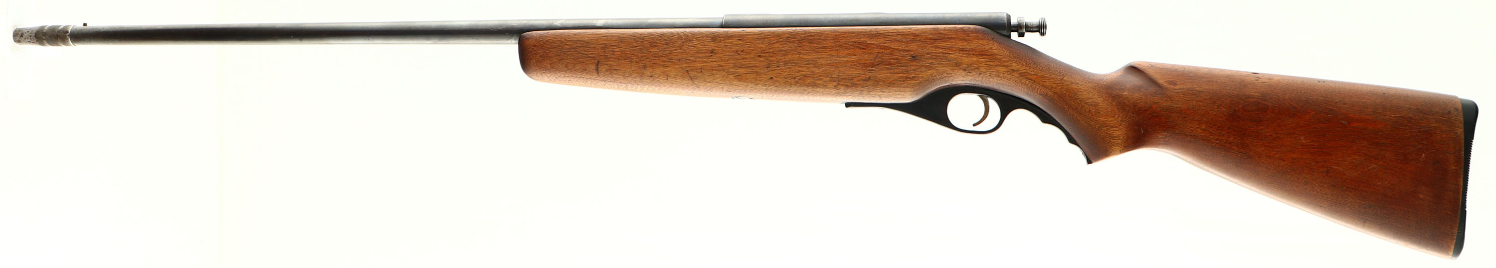 Ward's Western Field, Model 04M 218A, CAL: 410GA, MFG: N/A, SN: NSN, Bolt Action Shotgun, 24'' threaded barrel w/choke, 3''. The original flat pistol grip wood stock is very good, having been refinished long ago. There are numerous light scrapes & a few dings to the worn & thinning refinish. The metal blue finish has worn to 60%. Bore is excellent & bright. The barrel holds a single front bead. Grooved plastic buttplate. Bolt handle has been replaced and will not stay attached. FFL or C&R Req. - Value: 80 to 150