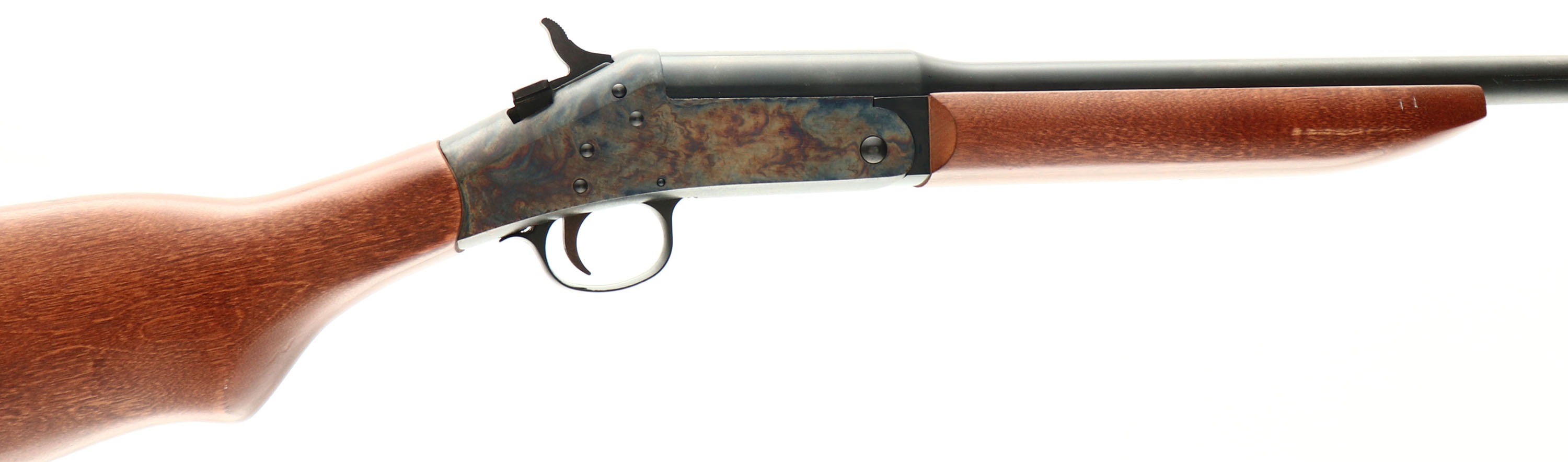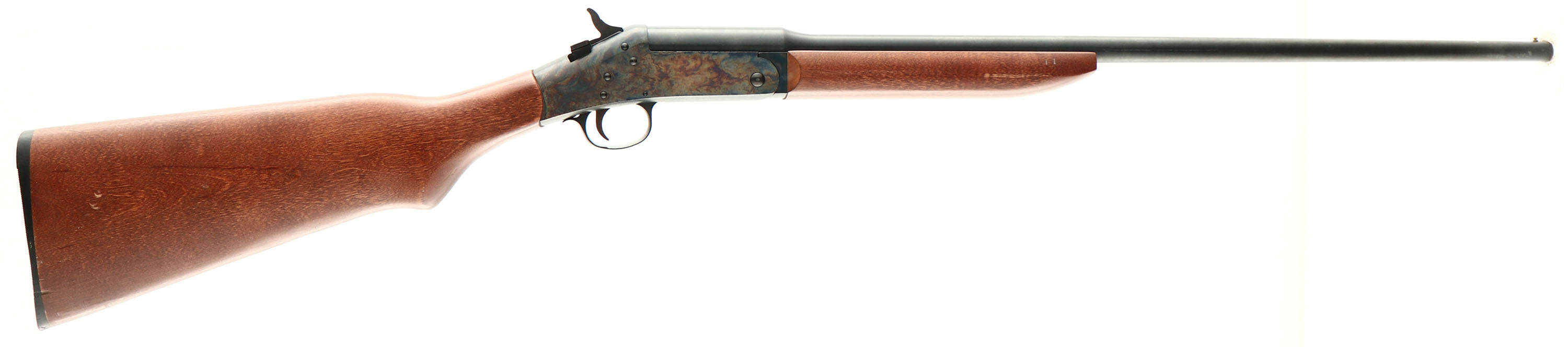 Harrington & Richardson, Topper Model 88, CAL: .410 GA, MFG: 1981, SN: AX467030, Break Action Single Shot Shotgun, Choke: Full 3'', 25 1/8'' barrel. The original round knob wood stock is excellent. There is only a couple minor handling marks. The metal blue finish on the barrel rates 98% & the receiver is case-hardened, retaining full case-colors. Bore is excellent, The barrel holds a single front bead. H&R grooved plastic buttplate. FFL Req. - Value: 100 to 200