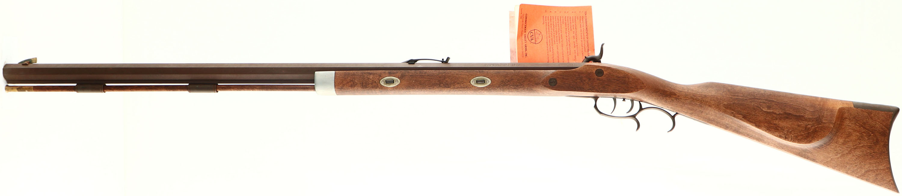 BOXED, CVA, Mountain Rifle, CAL: 50, MFG: N/A, SN: 0080995, Single Action Percussion Rifle, 32'' octagon barrel. Factory markings on barrel. The cheeked straight grip wood stock is excellent. The browned finish is excellent. Bore is excellent. Adjustable rear sight & blade front sight. Crescent metal buttplate. Comes in factory box, with original hang tags still attached. Blackpowder, No FFL Req. - Value: 150 to 250