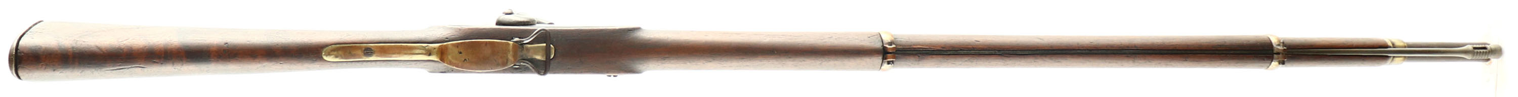 Lambin & Theate, Copy of ''The Little Enfield'', CAL: 47, MFG: 1886-94, SN: NONE, Percussion Muzzleloader, 27 7/'' barrel. Originally, ''The Little Enfield'' muskets were made for Cadets in Brazil. Some examples made it north to America, where they were sold as ''American Civil War'' guns. Although that is inaccurate, it helped attract potential buyers. This example is made by Lambin & Theate (Belgium) from appx 1886-1894. The company was well-known for making copies of ''old'' style arms for export to Africa & South America, where cartridges may have been harder to come by. The barrel is marked ''L&T'' in a rectangle, with proofs on the left/right barrel flats. The side plate is also stamped ''L&T'' in a rectangle. The initials ''W.S.C'' are carved into the left stock flat & left side of buttstock. There may be a couple other non-legible letters throughout the stock. The wood stock is good & solid. There are numerous small contusions, dings, scotches & scrapes. The blued finish on the barrel has toned to a mix of remaining blue & brown patina. The case-hardened side plate retains visible case-colors. Brass hardware has an aged/orange patina. the rear lock plate/side plate screw is missing. Bore is poor, dark & rough. Blade front sight. Brass buttplate. the percussion nipple tip where the cap sit, has broken off, the base of the nipple still in rifle. Scaled down bayonet. This is a functional firearm. Black powder, No FFL Req. - Value: 600 to 1200