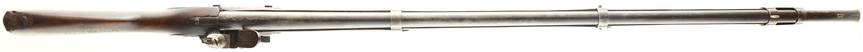 American/Prussian, .69 Cal Musket, MFG: early 1800s, S/N: None, Flintlock musket, 42'' barrel. The straight wrist walnut stock is good. The stock has a crack on the top of the wrist, one on the bottom of the stock between the side plate & trigger guard tang, one at the top of the side plate between it & the barrel, one on the left side of the forend between the middle & front barrel band, by the stock pin. More small cracks /grain pops by the buttplate. stock has various nicks, dings, & dents from use/age. The right cheek of the stock is marked ''M. P. FRENCH'', possible the name of the Militia man who used this musket or could have been added later for some unknow reason. The metal has toned to a mix of gun metal gray & brown patina with areas of roughness & cleaned pitting. The rear of the barrel is marked ''P''. This is in the style/font of the Early American P proofs of this era. The top mounted bayonet lug is marked with a faded ''U''. the side plate is marked with two worn symbols that appear ''da''. The lock has no markings but appears to be a Prussian made lock from the Late 1700s. Hammer has a crew & brass nut holding it on. the bore is poor. Dark with rust, roughness & pitting. Front barrel band mounted brass front sight blade. The stock carries a iron/steel buttplate with rust & patina. The musket has both bottom sling loops & a ramrod. This musket presents as a pieced together gun made for the militia or just for utilitarian purposes back in the very early 1800s. Musket does appear like a early Springfield model besides the Prussian lock. Antique/Muzzleloader, No FFL Req. - Value: 400 to 800