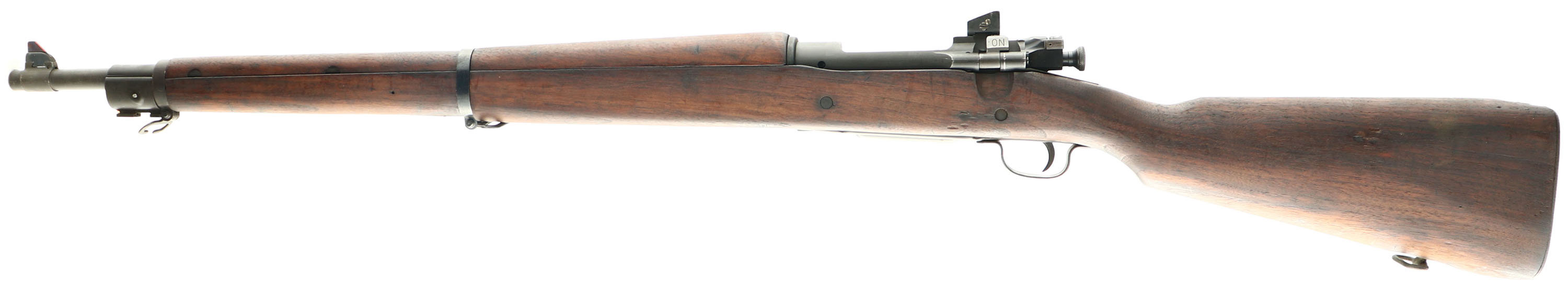 HISTORY: Between 1941-42, Remington would start implementing simplifications to the M1903 rifle by replacing some milled parts of the rifle over to stamped in order to save time & money. They were small parts like the magazine followers, barrel bands, & trigger guards. Guns made by them or refurbished during this time could see a mix of parts. The military would adopt the M1903-A3 in May of 1942 & it would include all the simplifications done by Remington as well as replacing the rear sight with a aperture that was mounted to the rear of the receiver. Smith-Corona would get a contract to make M1903 rifles in February of 1942, but in May it was switched to the New 03-A3 model before any rifles could be made or delivered. They would make their first test batch of rifles in October & mass production began in November, a month ahead of Remington's initial delivery.