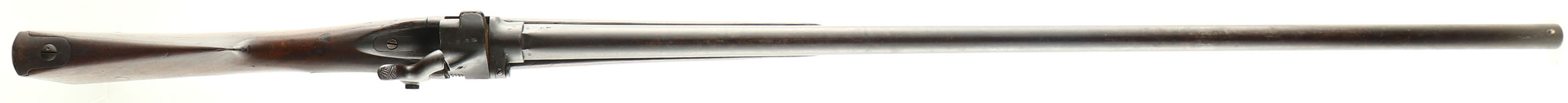 HISTORY: This started life as a French made Muzzleloader, either a MLE 1842 or a MLE 1853/57. It was then upgraded with the Tabariere breech loading system. invented in 1864, roughly 358,000 rifles had been converted by July of 1870, in time for the Franco-Prussian war where they were used by second line troops or in defensive roles since this weapon system was inferior to the Chassepot rifle. After the war they were sold to Belgium who converted them into very cheap shotguns, known today as ZULU guns. This was done in the late 1870s to the 1880s. large numbers of these would be bought by US importing companies & sold on the US hunting market as a cheaper alternative than the US made shotguns. Sometimes there were marked with trade names of ''ZULU'', or ''HUNTER''. These shotguns would cost 3-5 bucks where a US made pump action shotguns costed 15-20 bucks. This gun comes with a photocopy of a old Saxon ad from Harpers Weekley in 1881, that shows these guns being sold for $5.50