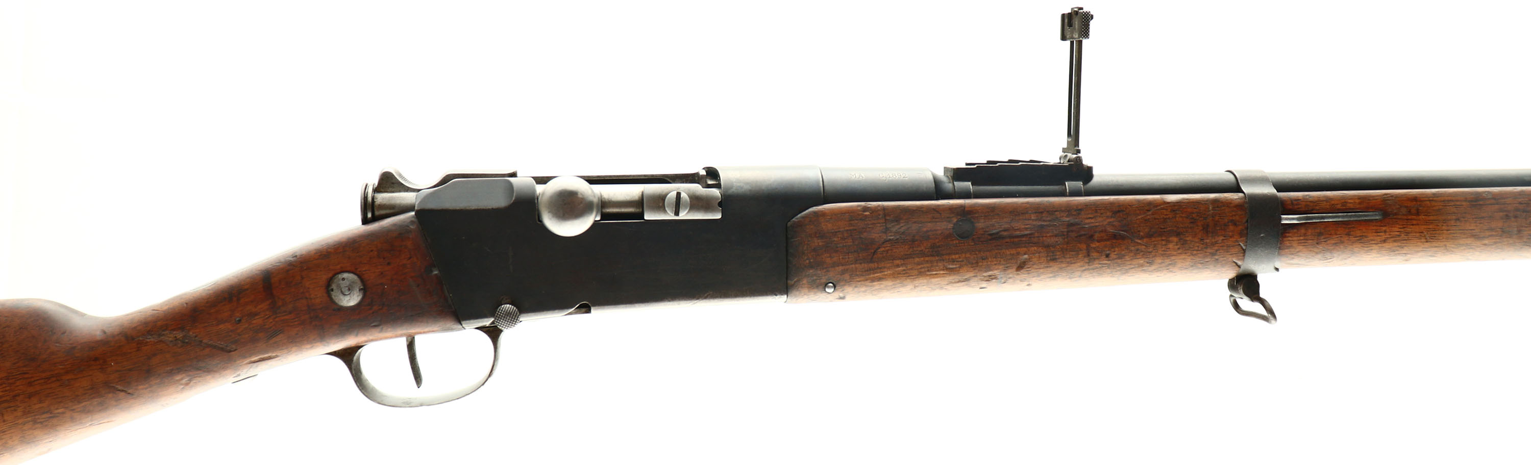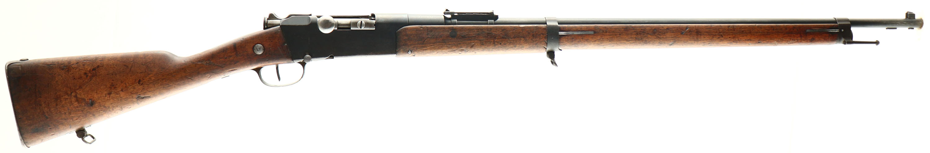 HISTORY: The Lebel is a major steppingstone in firearms development as a whole. It was the first rifle to chamber a smokeless powder cartridge (the powder used today). This new powder was developed in 1884 by Paul Marie Eugne Vieille. It was three times more powerful than black powder for the same weight & left substantially less fouling after firing. This new powder doubled the effective range of fire, allowed smaller bore rifles to be viable without black powder fouling, & would give way to reliable self cycling systems like machineguns. This advancement sent every other nation scrambling to develop their own smokeless powder & make a rifle chamber it. The development history of the Lebel is interesting. When the powder was invented the French Military planned on designing a whole new rifle & cartridge to fully exploit the new powder. They would spend the whole year of 1885 determining an optimal caliber. These plans would change in January of 1886, as a New French War Minister would be elected, General Georges Ernest Boulanger. He was a revanchist & wanted a new rifle in the new powder on his desk by the end of the year. He appointed General Tramond to head the project. They already spent this time designing a, so they took that & take parts from already existing rifles to make the new rifle. They took the 11mm Gras case & necked it down to the new 8mm bullet. They had to use a double taper on the case to achieve this effectively. The double taper design would handicap the French military system for decades to come, being hard to cycle repeating arms. The magazine, feeding system, & stock was taken from the MLE 1884 & MLE 1885 Gras-Kropatschek. The bolts locking lug design was taken from the Swiss Vetterli rifles. It used the trigger of the M1874 Gras. Lt. Colonel Nicolas Lebel, which the rifle is named after, designed the 8mm Bullet. They took all these parts & made the MLE 1886 Lebel. They would produce the Lebel from 1887 to 1904 with 3.45 Million made, enough to arm the whole army at the time & have plenty in storage. Production of parts would start up again in WW1 to repair existing rifles, & in 1916 some new rifles were made from extra parts but no new gun production of the Lebel would start up. The French were making new Berthier carbines for colonial troops at the time, with the need for rifles they would take the barrel & bayonet from the Lebel, put it on the Berthier 1907 as well as some other features to speed up production, & then the MLE 07/15 Berthier was born. The Lebel would stay in service with Franch clear until WW2 with new models being designed in the mid 1930s.