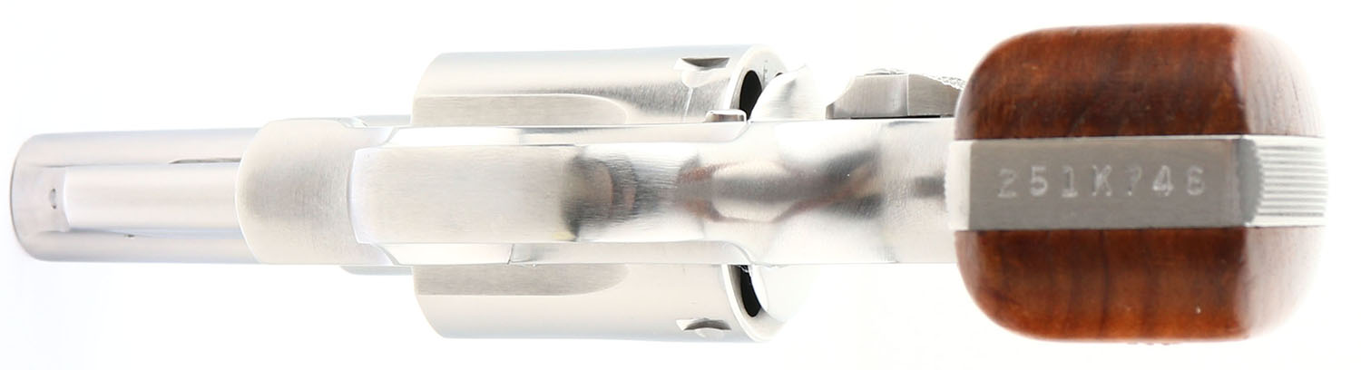 BOXED, Smith & Wesson, Model 66-2, CAL: 357 MAG, MFG: 1982, SN: 251K746, Double Action Revolver, 2 1/2'' barrel. The left side of the barrel is marked ''SMITH & WESSON''. The right side of the barrel is marked ''S&W.357 MAGNUM''. The left side of the frame is marked with the standard four line address stamp. The right side of the frame has a large S&W trademark logo above the grip. The original S&W medallion checkered wood grips are excellent. The original stainless steel finish is excellent. Bore is excellent. Adjustable rear sight & elevated serrated blade front sight with orange insert. Comes in factory SN matching box, with wax paper. FFL Req. - Value: 500 to 800