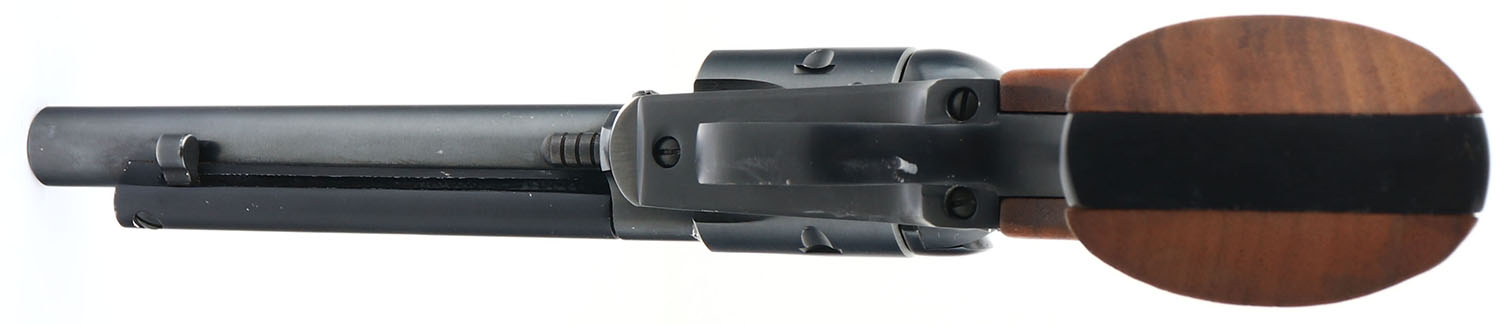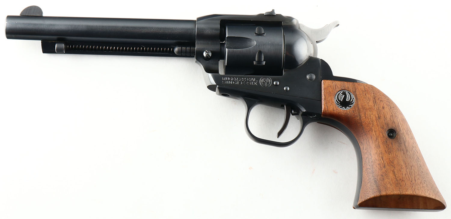 Ruger, Single-Six, CAL: 22LR, MFG: 1968, SN: D499860, Single Action Revolver, 5 1/2'' barrel. The top of the barrel is marked with the standard address stamp. The left side of the frame is marked in two lines ''RUGER .22CAL/ SINGLE SIX'' & Ruger Pheonix logo. The right side of the frame has the full SN. The Ruger logo medallion wood grips are excellent. The original metal blue finish rates 98% overall. Bore is excellent. Fixed square notch rear sight & round blade front sight. Comes with .22 MAG cylinder. This revolver is unique in the sense that the ''D'' prefix in the SN is actually a stamp meaning ''Duplicate Serial Number''. Duplicate Ruger Single Six serial numbers are rare but have occurred in the past, typically due to errors in production or storage. An excellent example of an original Single Six. FFL or C&R Req. - Value: 350 to 500