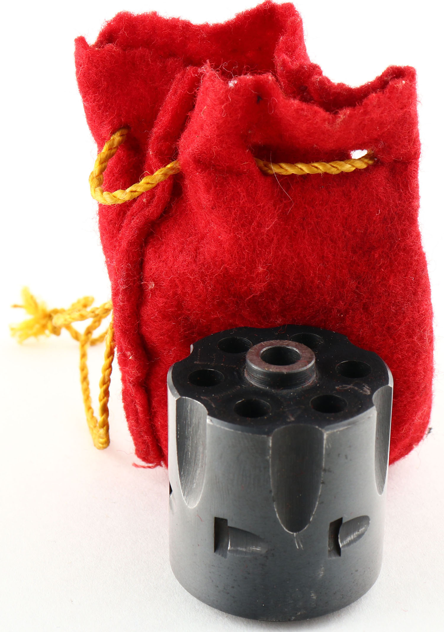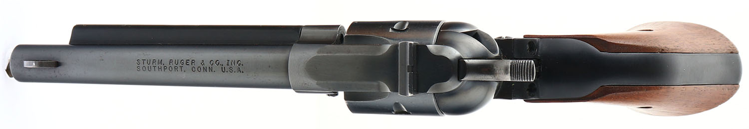 Ruger, Single-Six, CAL: 22LR, MFG: 1971, SN: 21-07847, Single Action Revolver, 5 1/2'' barrel. The top of the barrel is marked with the standard address stamp. The left side of the frame is marked in two lines ''RUGER .22CAL/ SINGLE SIX'' & Ruger Pheonix logo. The right side of the frame has the full SN. The Ruger logo medallion wood grips are excellent. The original metal blue finish rates 97% on the barrel & 99% on the frame. Bore is excellent. Fixed square notch rear sight & round blade front sight. Comes with .22 MAG cylinder in red velvet pouch. FFL or C&R Req. - Value: 300 to 450