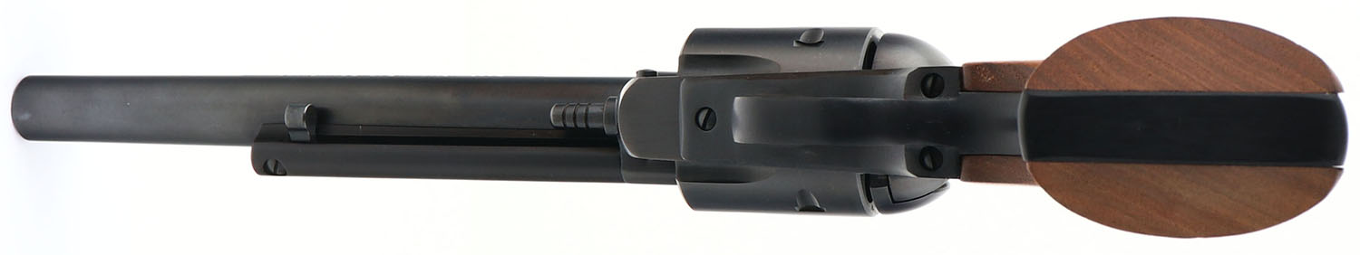 NEW BOXED, Ruger, New Model Blackhawk, CAL: 45LC/45ACP, MFG: 1980, SN: 46-62360, Single Action Revolver, 7 1/2'' barrel. The left side of the barrel is marked with the standard warning & address stamp. The left side of the frame is marked ''RUGER .45 CALIBER/NEW MODEL BLACKHAWK''. The SN is marked on the right side of the frame. The Ruger logo medallion wood grips are mint. The blued metal finish rates 100%. Bore is mint. Adjustable rear sight & elevated serrated blade front sight. Comes in factory box, with .45 ACP cylinder in original box & related paperwork. FFL Req. - Value: 500 to 650
