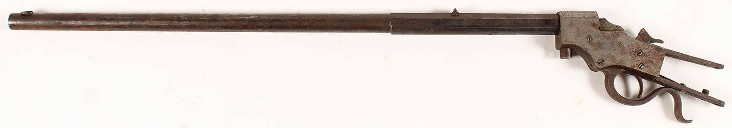 PARTS GUN, Stevens A & T Co., Model: 1894 Favorite , .22 LR Cal., MFG: 1894-1907, SN: 7860, Lever Action Single Shot Rifle, 22'' Barrel, There is no stock or forend with this gun. The metal blue finish on the barrel has worn & toned to a mix of brown & gun metal gray, with lot of rust speckling & pitting. The receiver is mostly silver, with rust pitting. Bore is fair, with lots of roughness amongst visible worn rifling. Barrel carries the original fixed rear & blade front sight. Bolt present. The hammer, lever & trigger are all present but do function correctly. This is a project gun. Therefore, this rifle is being sold ''AS-IS, with NO RETURNS & a recommendation for gunsmith repair. 21 years old or older to buy. FFL or C&R Req. - Value: 20 to 50