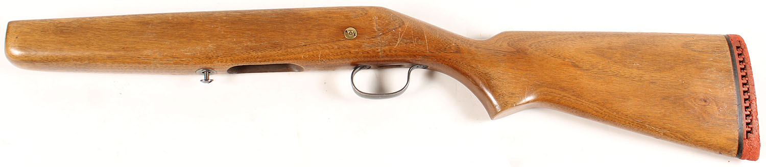 JC Higgins Wood Stock, 12GA Bolt Action Shotgun, deteriorating ventilated red rubber recoil pad. Grade: Very Good - Value: 20 to 40