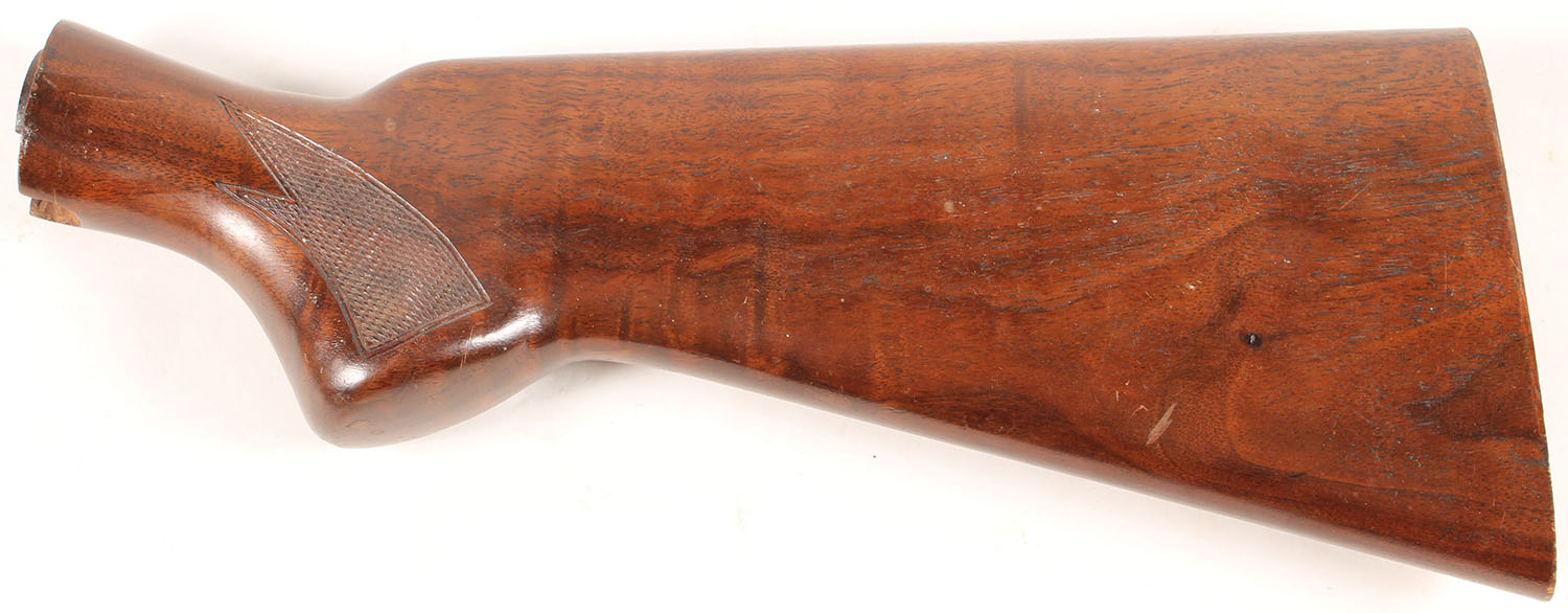Winchester Model 12 checkered shotgun take-off stock. Grade: Very Good - Value: 10 to 50