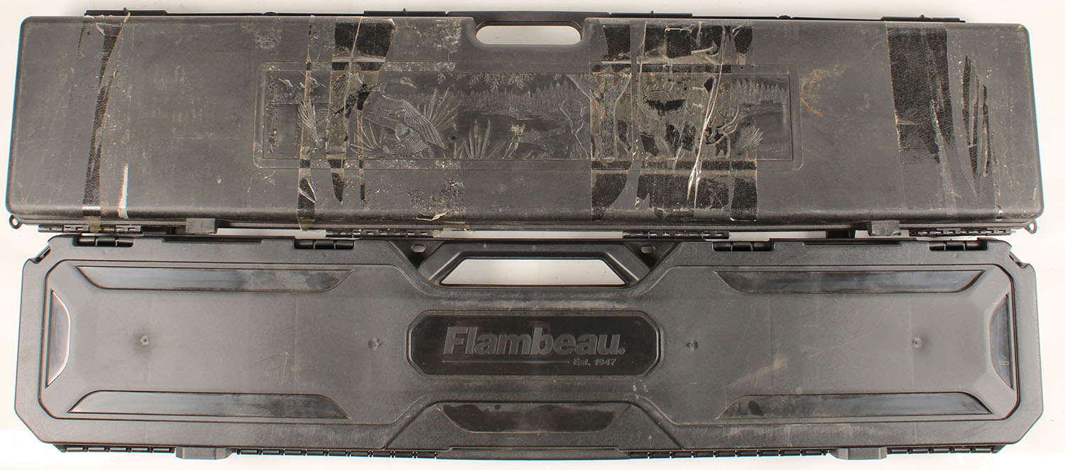 Lot of two gun cases, Kolpin & Flambeau, both have foam, Kolpin measures 47 1/2'' x 9'' inside, Flambeau measures 46'' x 9'' inside. Grade: Very Good ++ - Value: 20 to 60